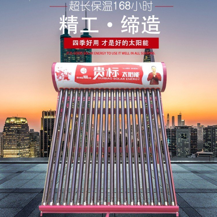 首先,我们先来看看贵标集成太阳能,它分为家用型和工程型两种。一般家用型的话普遍适用于家里人口少的家庭,安装在房顶上;工程型太阳能则适用于用水量较大的家庭、学校、宿舍、宾馆、酒店等场所,无论是家用型贵标集成太阳能还是工程型贵标集成太阳能,这种热水器都是非常节能环保的,它利用大自然的免费馈赠阳光来做功加热水,一般就是一次性成本投入,后期使用过程中零能耗的同时还非常环保,不产生任何的废水和污染物,也不存在任何的触电风险,安全级别非常高!