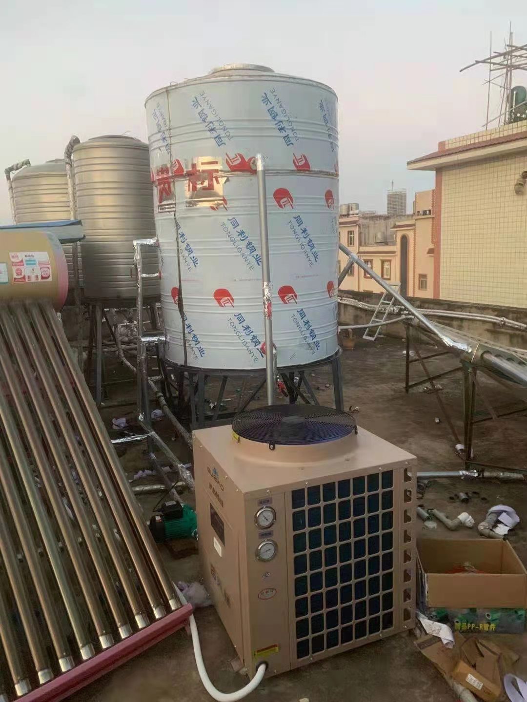 近年来云南空气能热泵用处广泛,酒店、宿舍楼等等公共场所都有所用,但空气能热泵机组较大,自动化程度较高的设备,机器的保养和水箱的定时清洗很重要,近日有传言“热水器水箱长时间不清洗就好比用污水洗澡”的帖子引起众多网友们的热议,家用空气能热水器还好点,因水箱只有那么大,而且还有过滤系统,商用空气能热泵就不好说了,因商用空气能热泵水箱大,又在楼顶,一年难得去上一次,那么大的商用空气能水箱要怎样清洗呢?